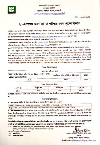 | 9 | ২০২৪ সালের অনার্স ৪র্থ বর্ষ পরীক্ষার ফরম পূরণের বিজ্ঞপ্তি | 2026-02-23 |