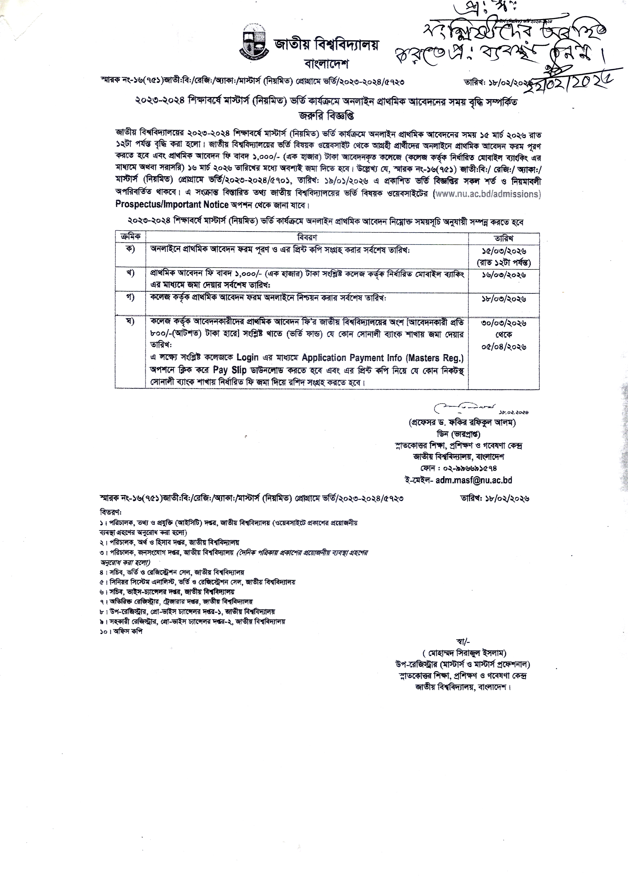 | 6 | ২০২৩-২০২৪ শিক্ষাবর্ষে মাস্টার্স (নিয়মিত) ভর্তি জরুরি বিজ্ঞপ্তি | 2026-03-01 |