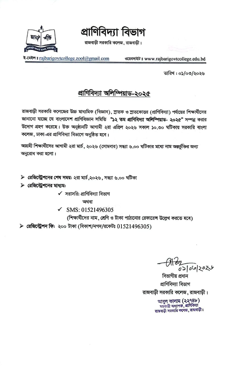 | 3 | ২০২৬ সালের উচ্চ মাধ্যমিক সার্টিফিকেট পরীক্ষায় অংশগ্রহণে ইচ্ছুক ছাত্র-ছাত্রীদের তথ্য ফরম | 2026-03-02 |
