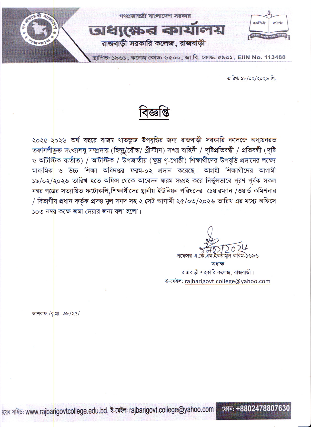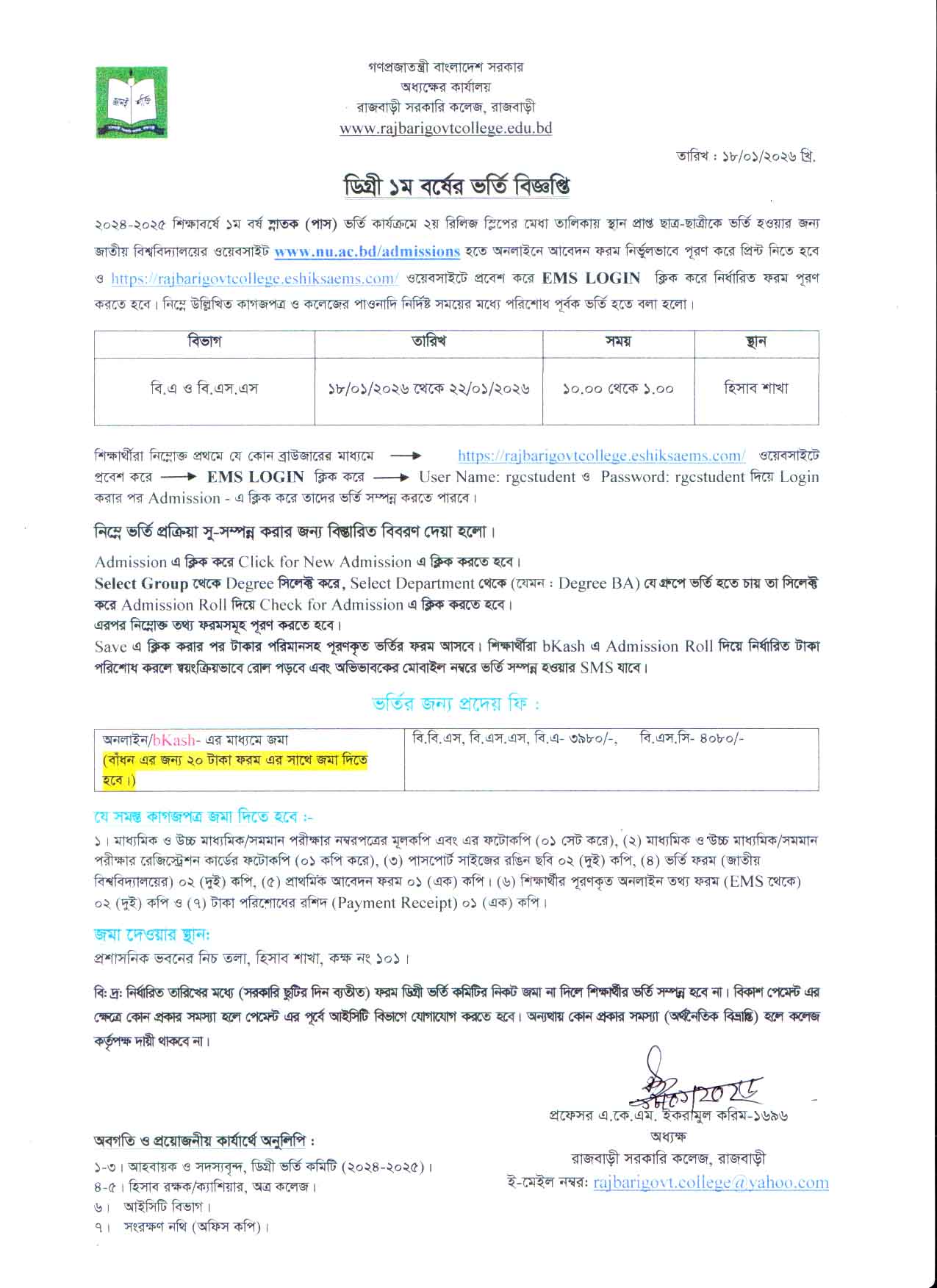 ডিগ্রী ১ম বর্ষের ভর্তি বিজ্ঞপ্তি |
