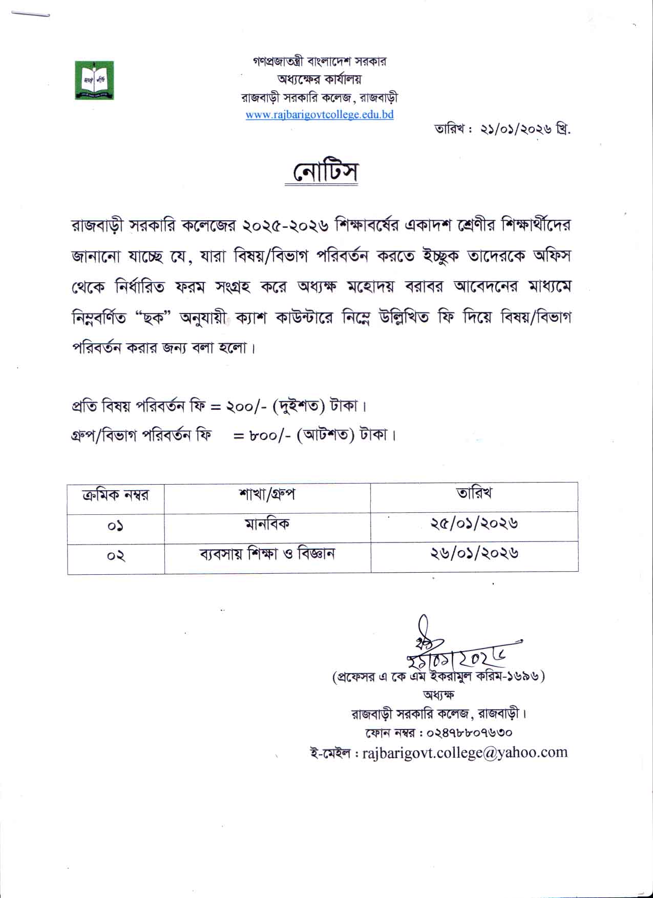 ২০২৫-২০২৬ শিক্ষাবর্ষে একাদশ শ্রেণিতে অনলাইনে ভর্তিকৃত শিক্ষার্থীদের অনলাইন টিসি বিষয়, গ্রুপ নোটিস |