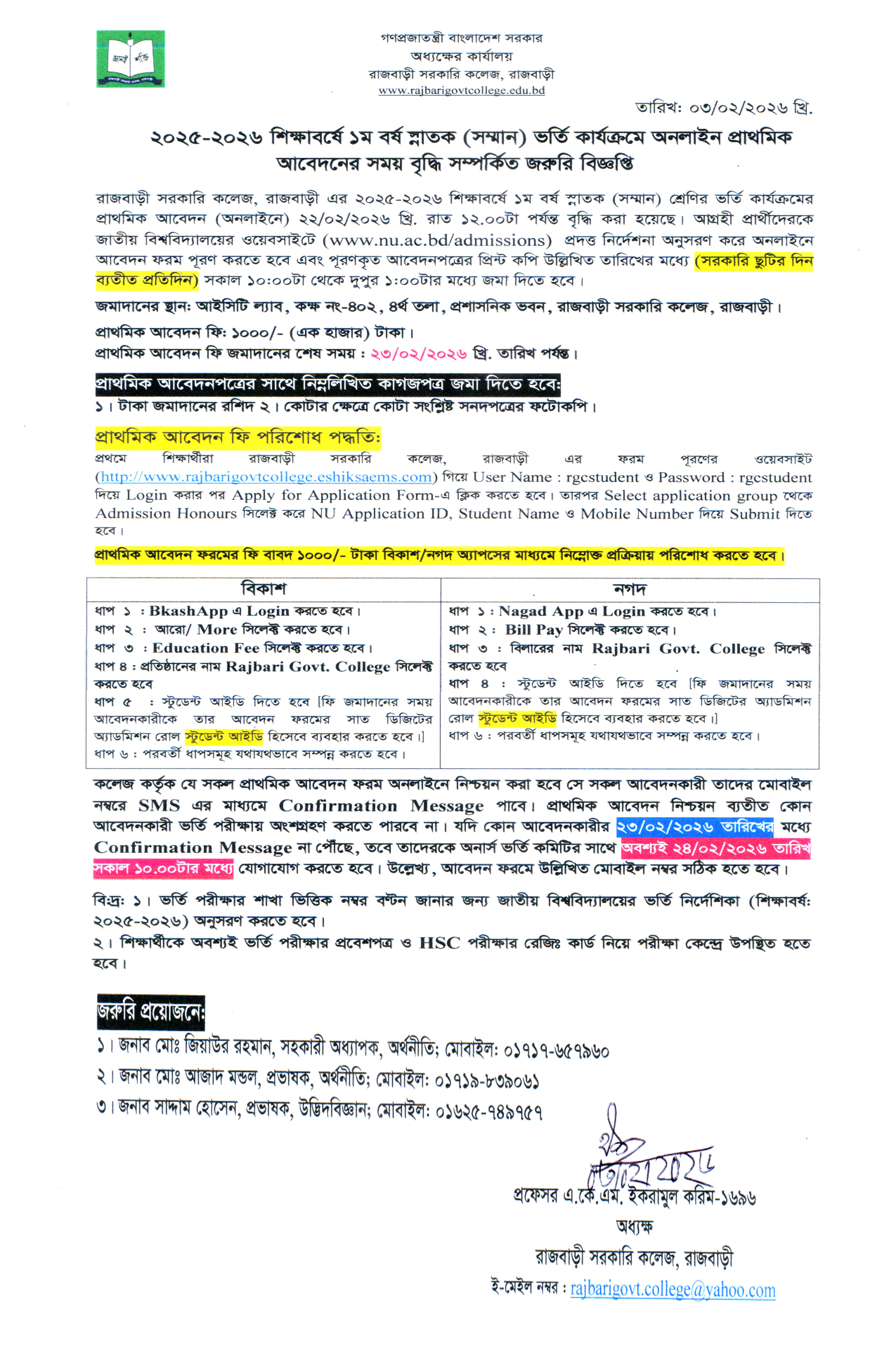 ২০২৫-২০২৬ শিক্ষাবর্ষে স্নাতক (সম্মান) ভর্তি কার্যক্রমে অনলাইন প্রাথমিক আবেদনের সময় বৃদ্ধি সংক্রান্ত জরুরি বিজ্ঞপ্তি |