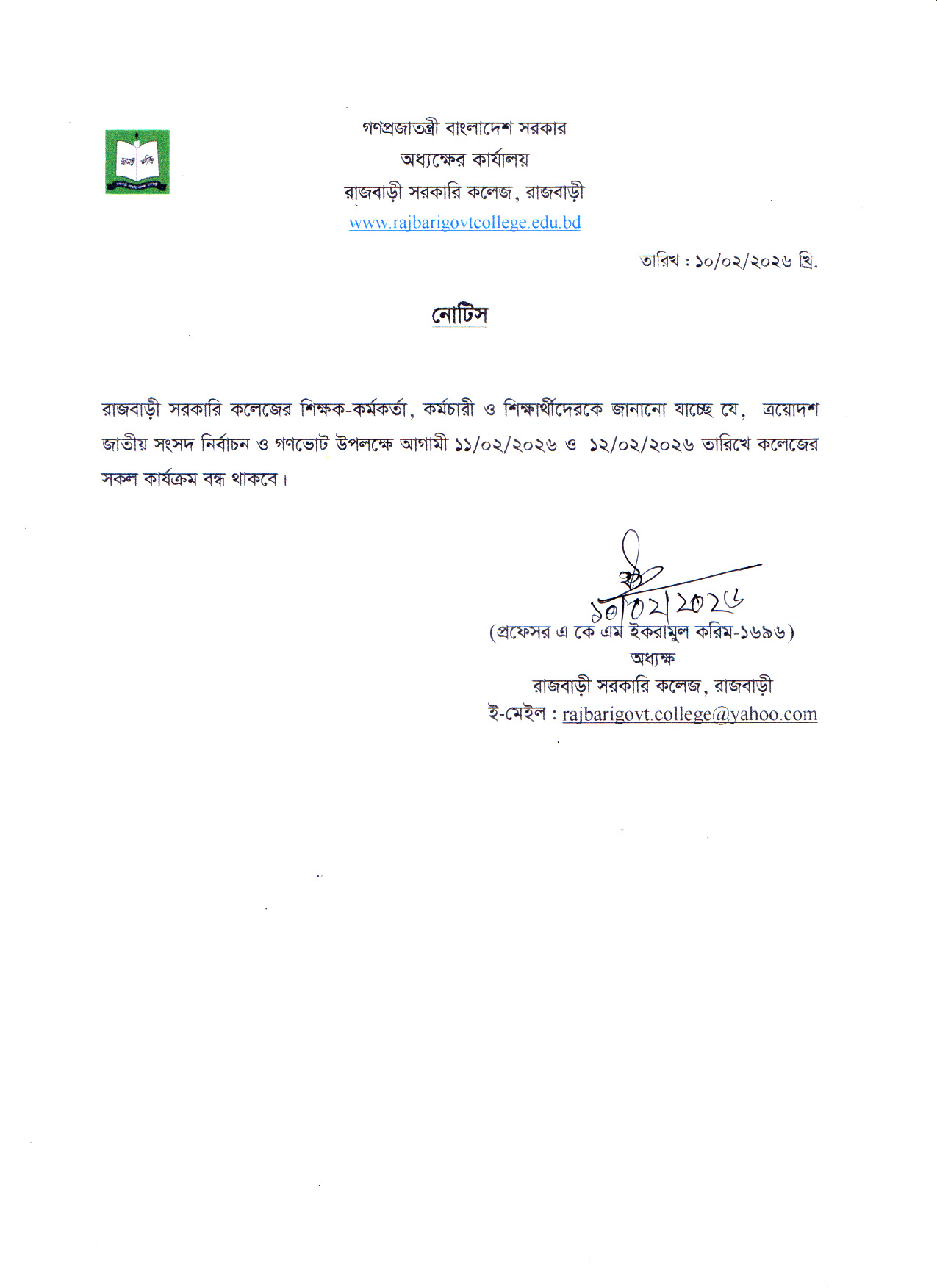 ত্রয়োদশ জাতীয় সংসদ নির্বাচন ও গণভোট, ২০২৬ উপলক্ষে ছুটির নোটিস |
