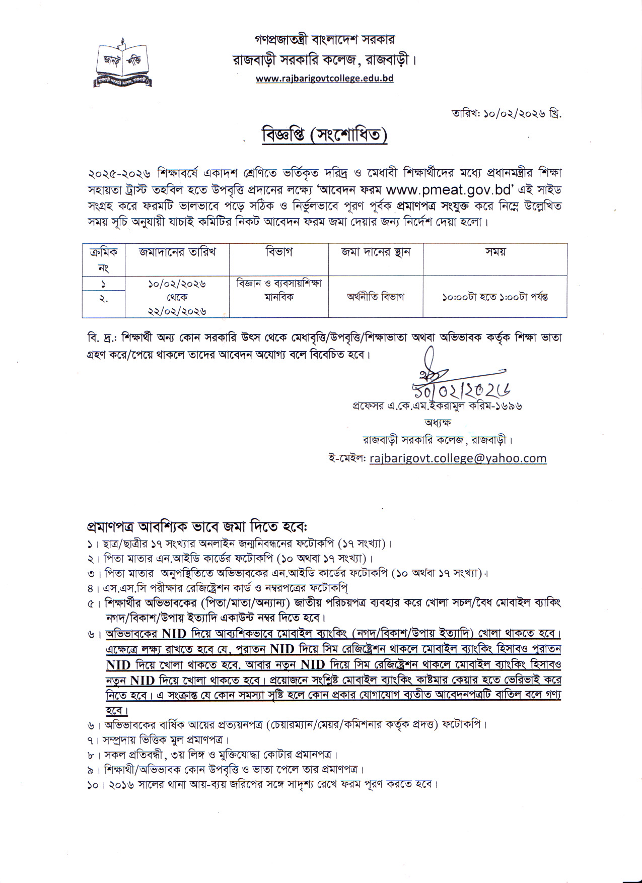 ২০২৬ সালের উচ্চ মাধ্যমিক সার্টিফিকেট পরীক্ষার ফরম পূরণের পূণ:বিজ্ঞপ্তি |