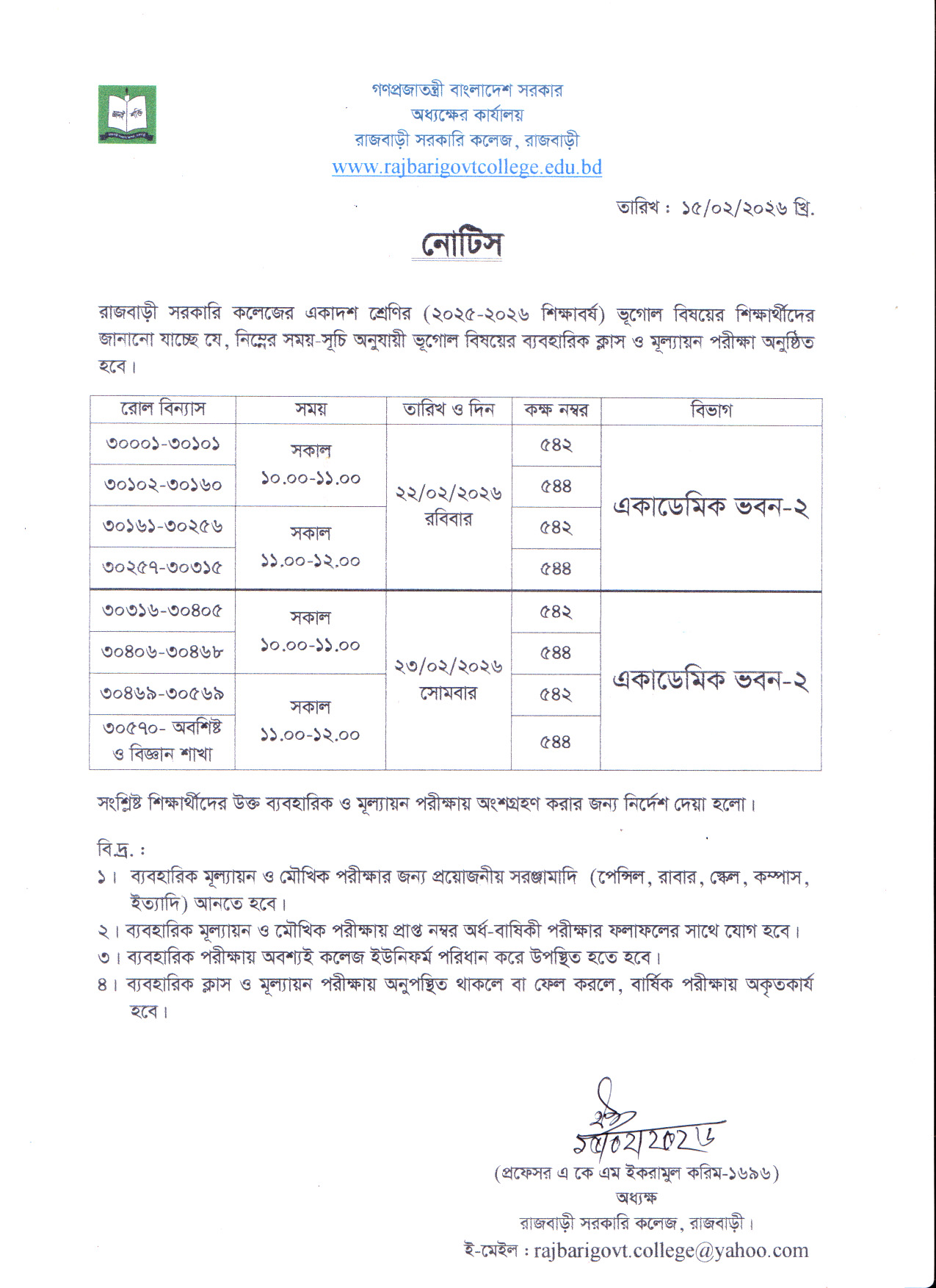 একাদশ শ্রেণির ভূগোল বিষয়ের ব্যবহারিক পরীক্ষার সমূয়-সূচি-২০২৬ |