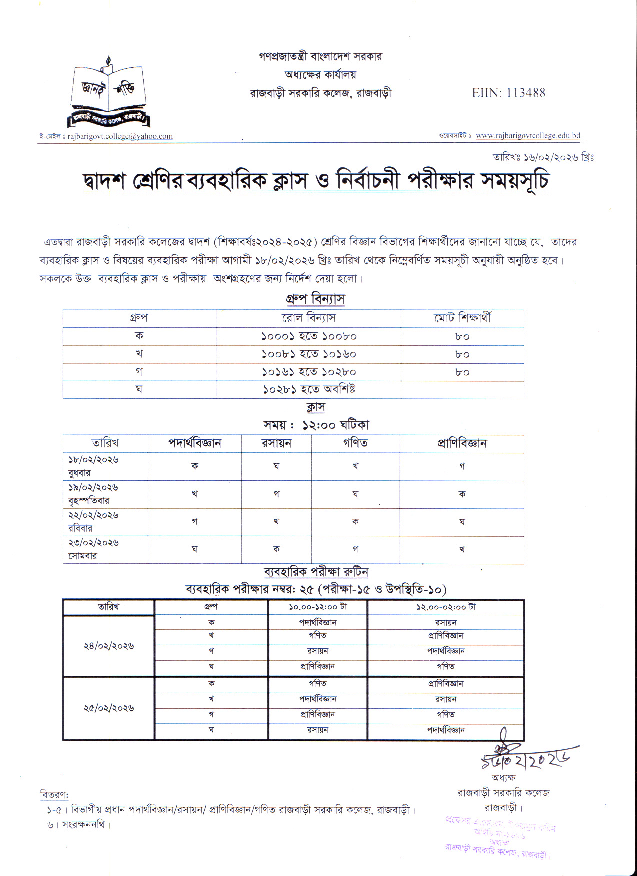 দ্বাদশ শ্রেণির ব্যবহারিক ক্লাস ও নির্বাচনী পরীক্ষা সময়-সূচি |