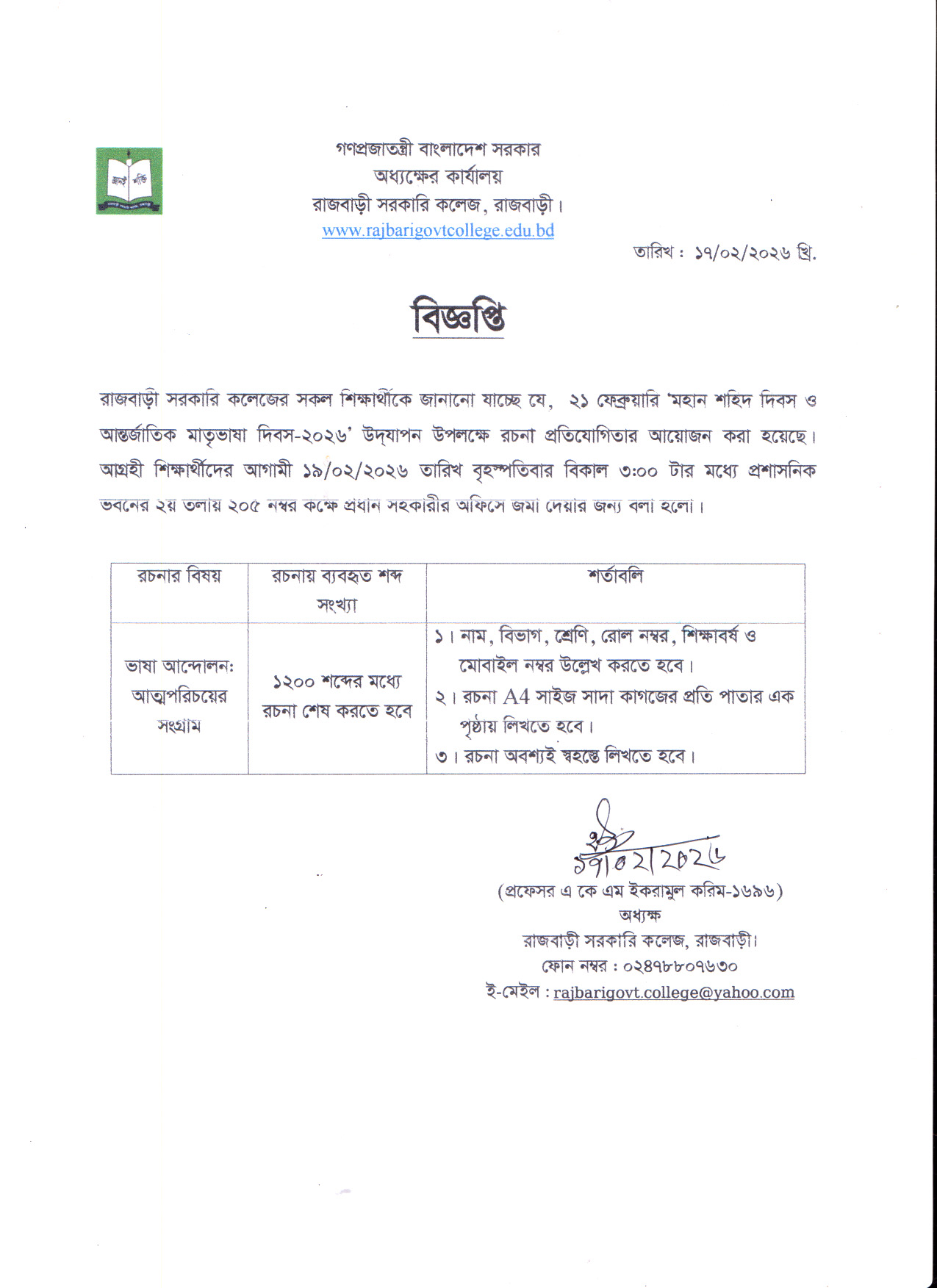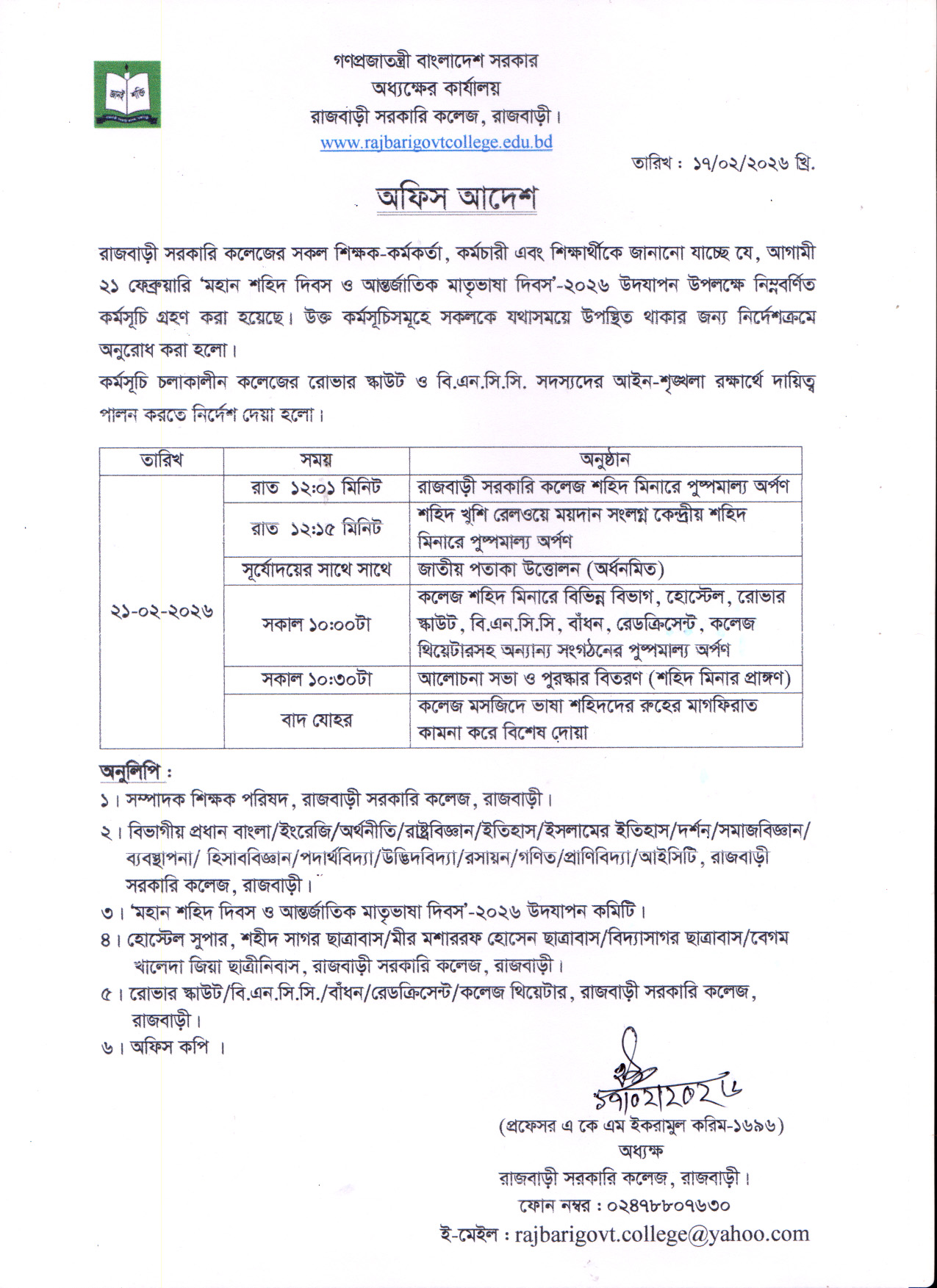 মহান শহিদ দিবস ও আন্তর্জাতিক মাতৃভাষা দিবস-২০২৬ এর অফিস আদেশ |